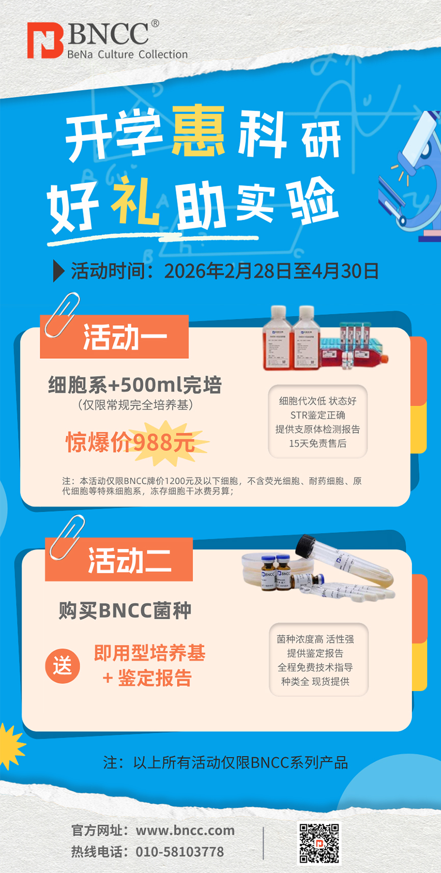 活动一:细胞专场 —— 买细胞即赠完全培养基